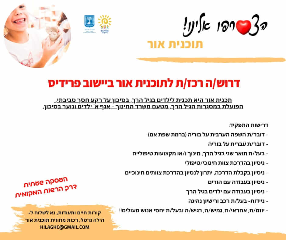 סטודנטים/ות המעוניינים/ות בעבודה בצהרוני גנים מוזמנים/ות ליצור קשר עם חפי: