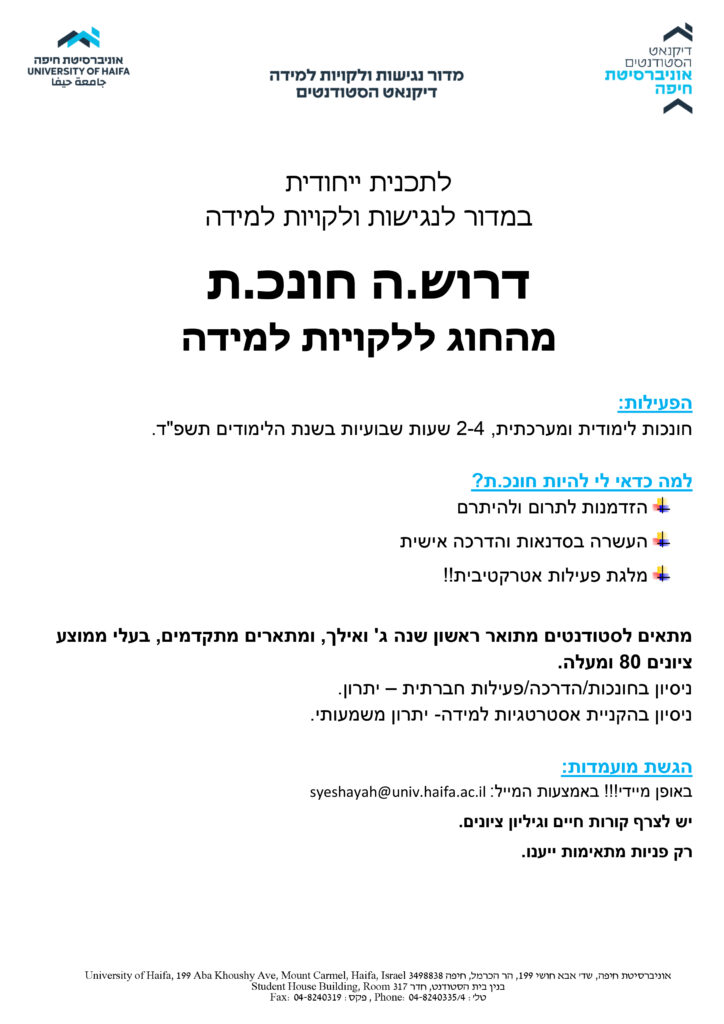 – סטודנטים/ות בפועל הלומדים/ות באוניברסיטת חיפה בלבד לתואר ראשון/שני,