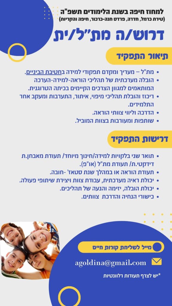 קורות חיים יש לשלוח עד ה-4.6.2023