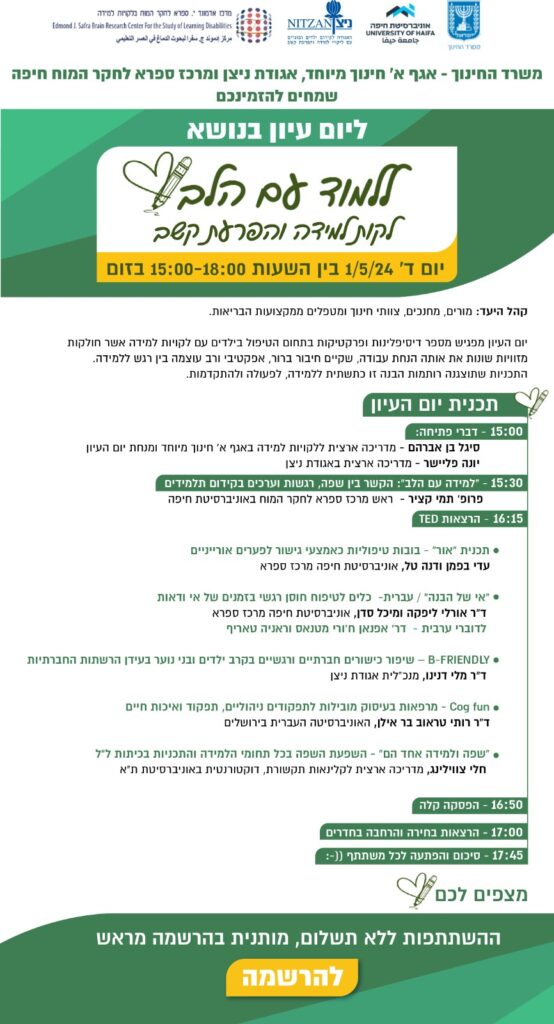 יום עיון בנושא: ללמוד עם הלב. לקות למידה והפרעת קשב