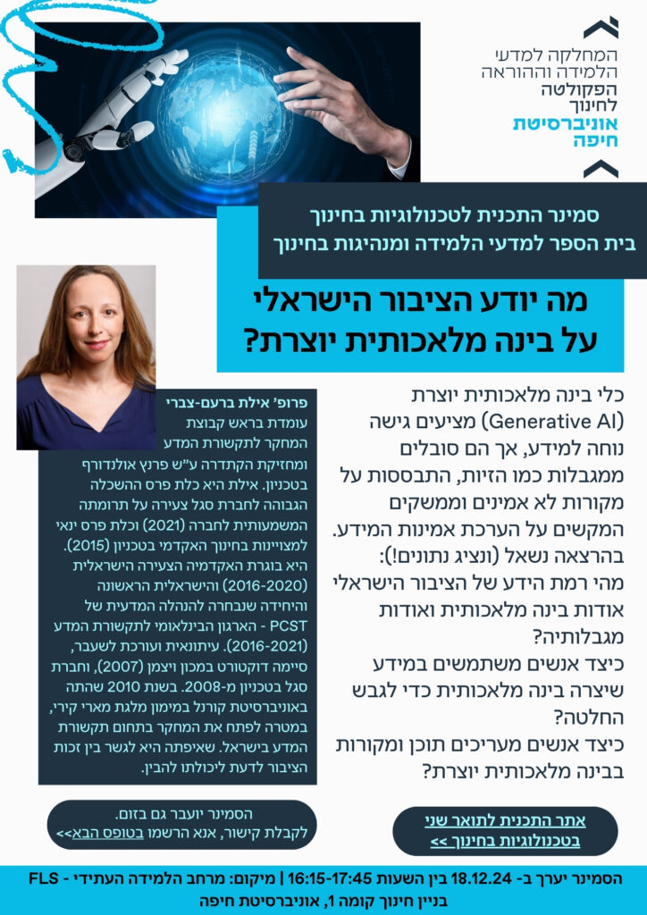 מיקום האירוע: בניין חינוך ומדעים, חדר 363, אוניברסיטת חיפה
