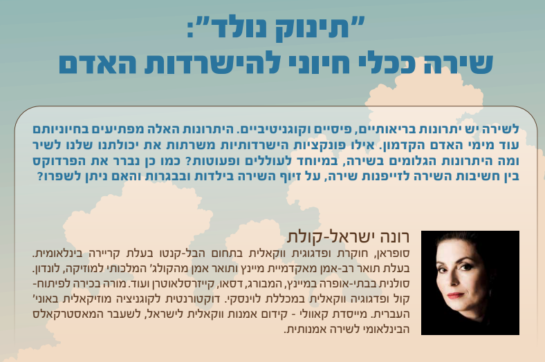 פורום הגיל הרך – "תינוק נולד": שירה ככלי חיוני להישרדות האדם 21.03.2022 • 16:00-17:30 שם האירוע: פורום הגיל הרך –