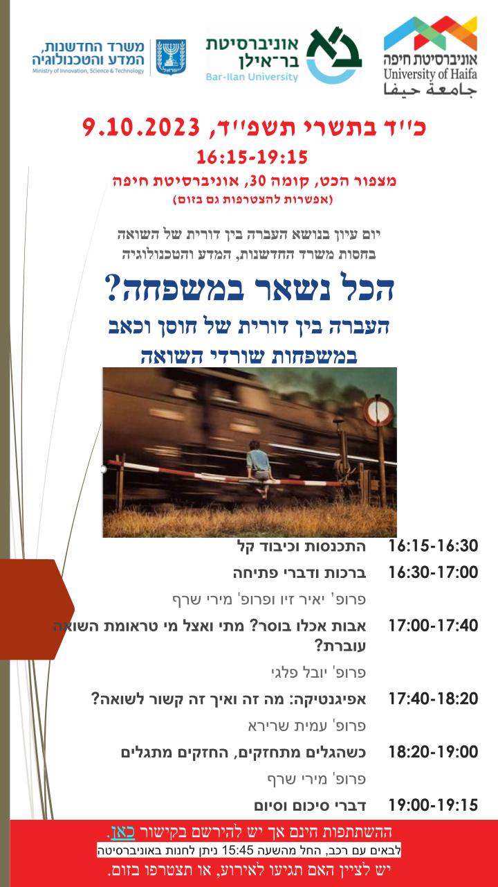 יום עיון בנושא: העברה בין דורית של השואה – הזמנה