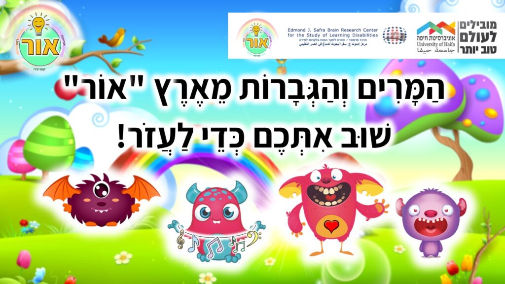 הערכה ניתנת להדפסה או להוראה מרחוק. כולנו מייחלים לחזרה לשגרה הבטוחה במהרה, צוות מרכז אדמונד י. ספרא לחקר המוח בלקויות למידה, אוניברסיטת חיפה