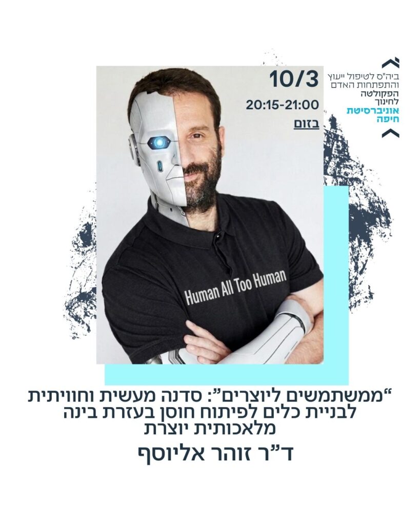 "ממשתמשים ליוצרים": סדנה מעשית חווייתית לבניית כלים לפיתוח חוסן בעזרת בינה מלאכותית יוצרת – ד"ר זוהר אליוסף
